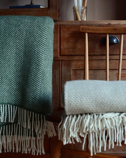 Soft wool blankets crafted in Wales, blending traditional techniques with sustainable materials. Designed for cosy layering, everyday use, and thoughtful gifting.