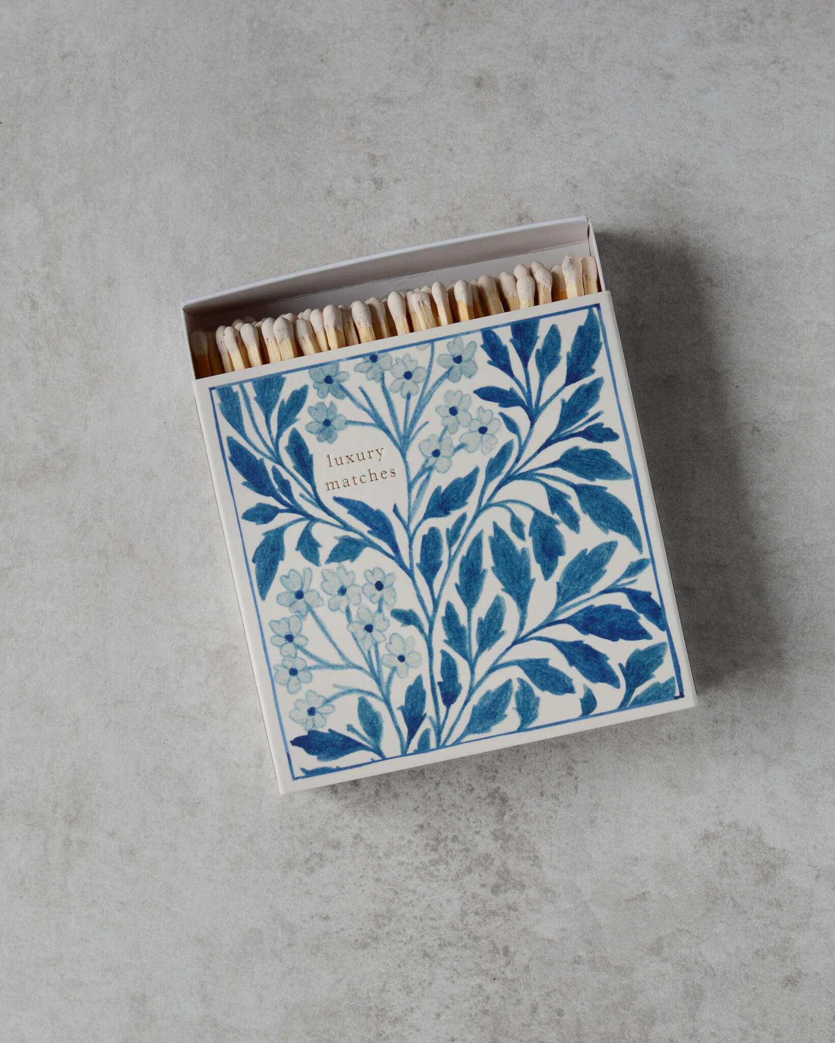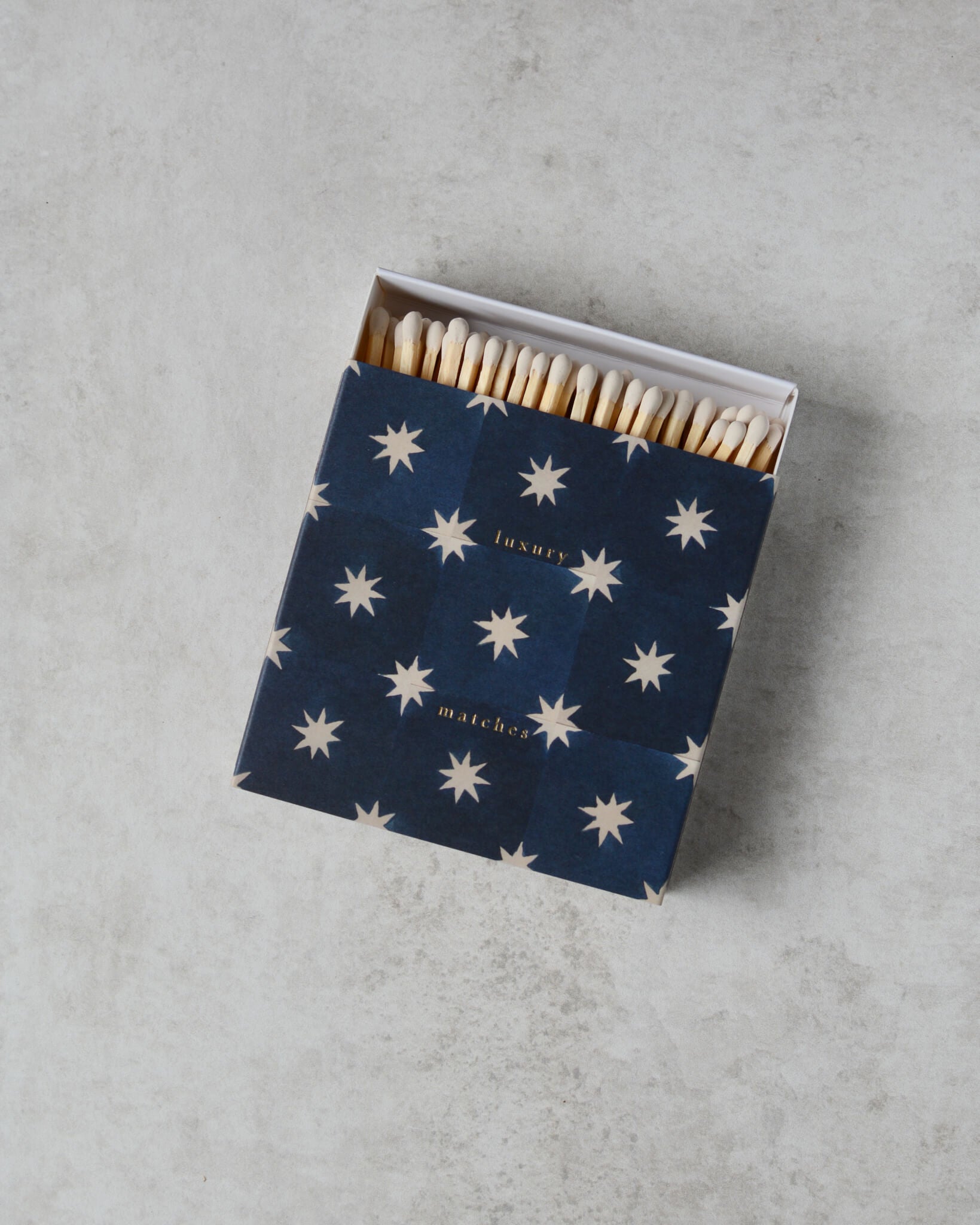 A pair of hand-dipped stubby beeswax candles and a box of extra-long letterpress matches. Nestled together in one of our stylish gift boxes and tied with a bow — ready to delight a loved one.