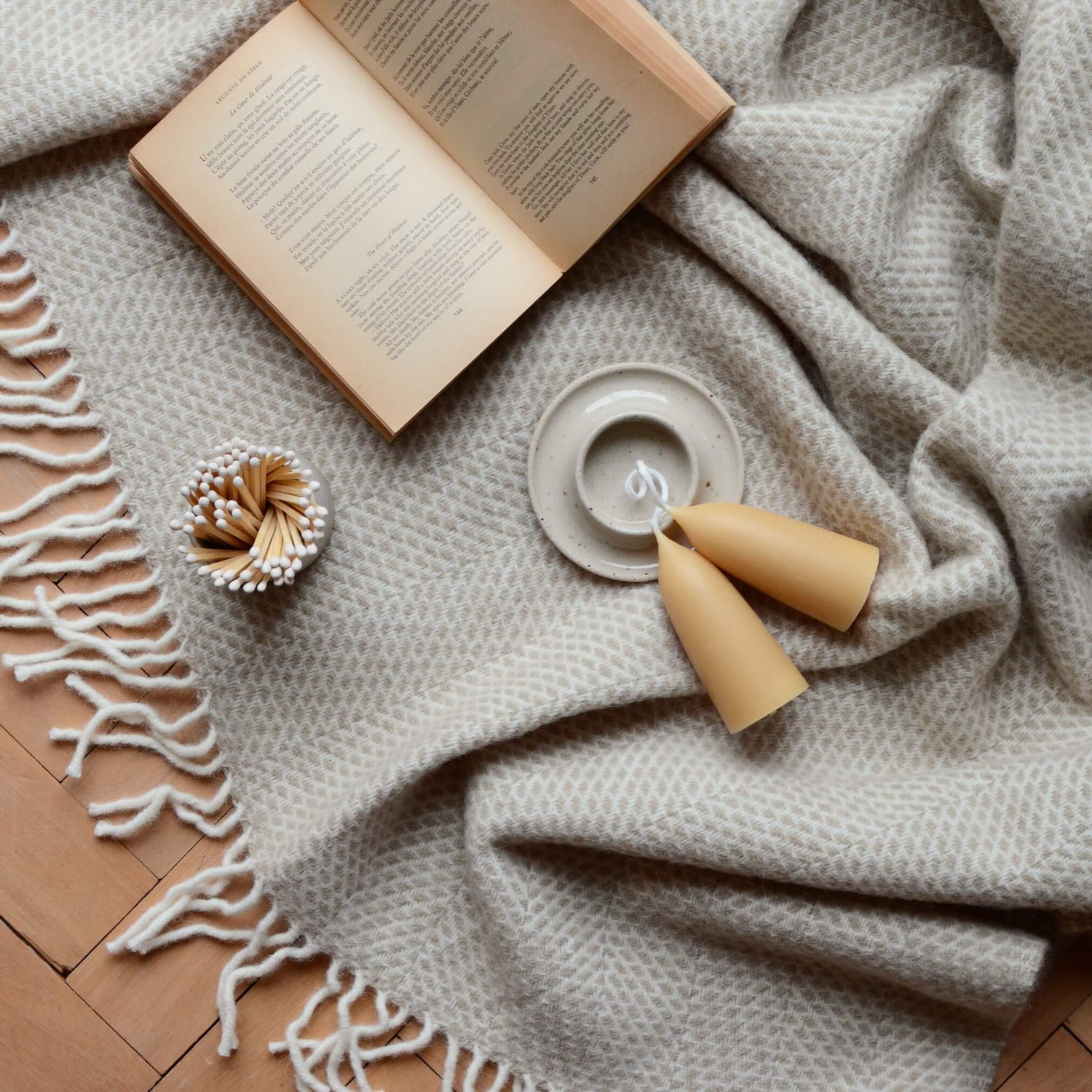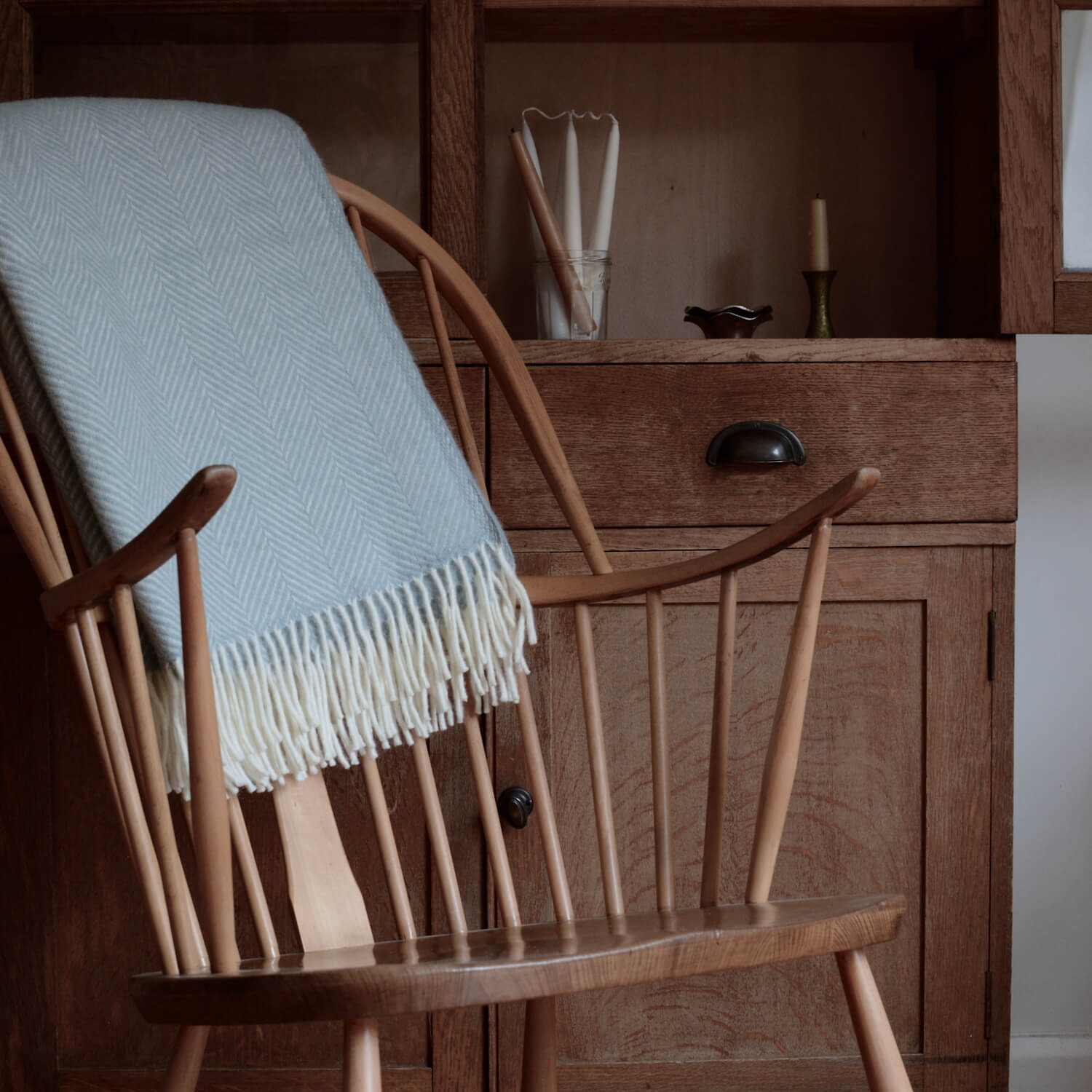 Our British-made pure wool blankets are warm, comforting and generously sized, for cocooning at home. They are traditionally woven for Weald Store at the edge of the Clwydian mountain range in Wales.
