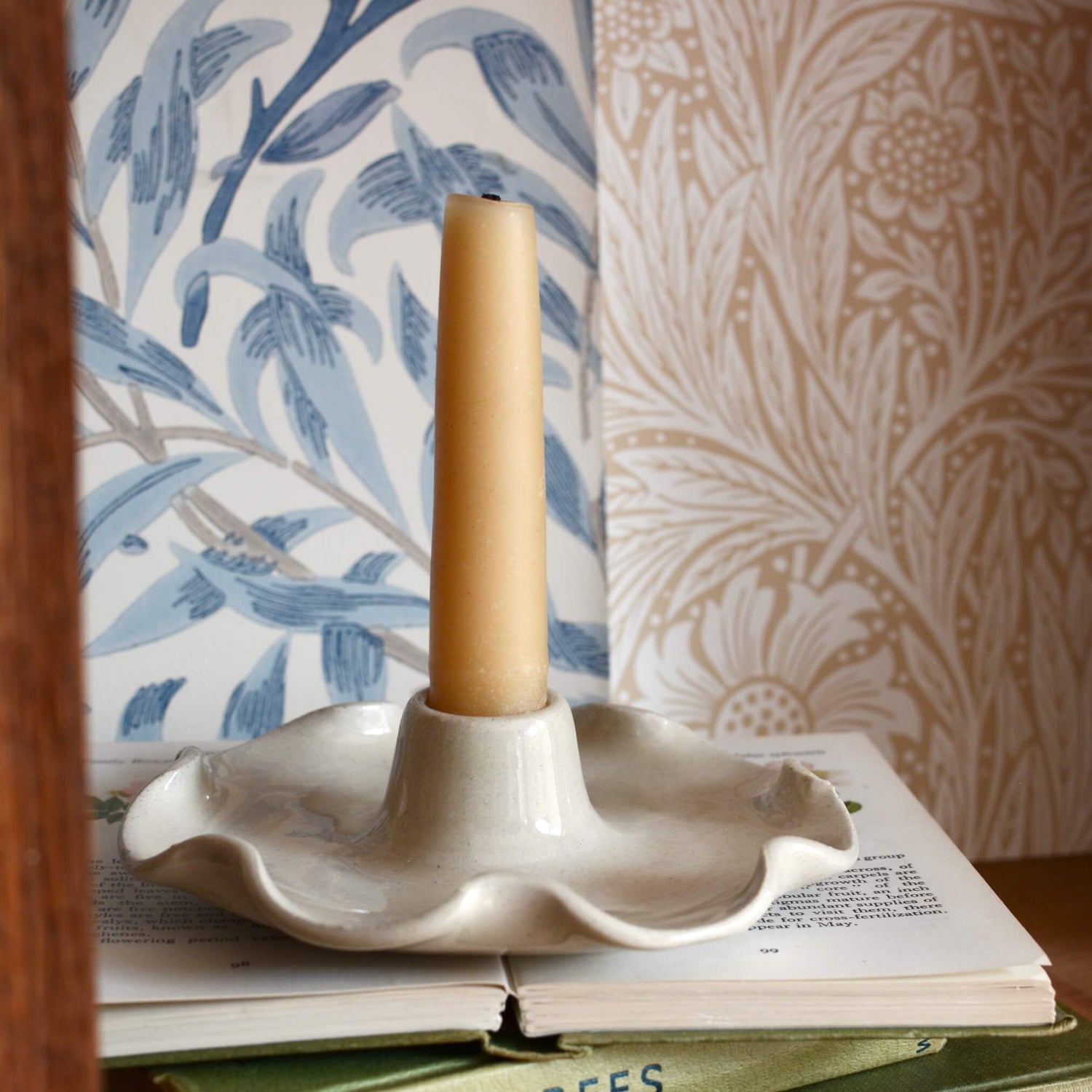 Our pure beeswax candles are made for us in a small workshop in Cumbria, where the traditional technique of hand-dipping has been used for over 40 years.