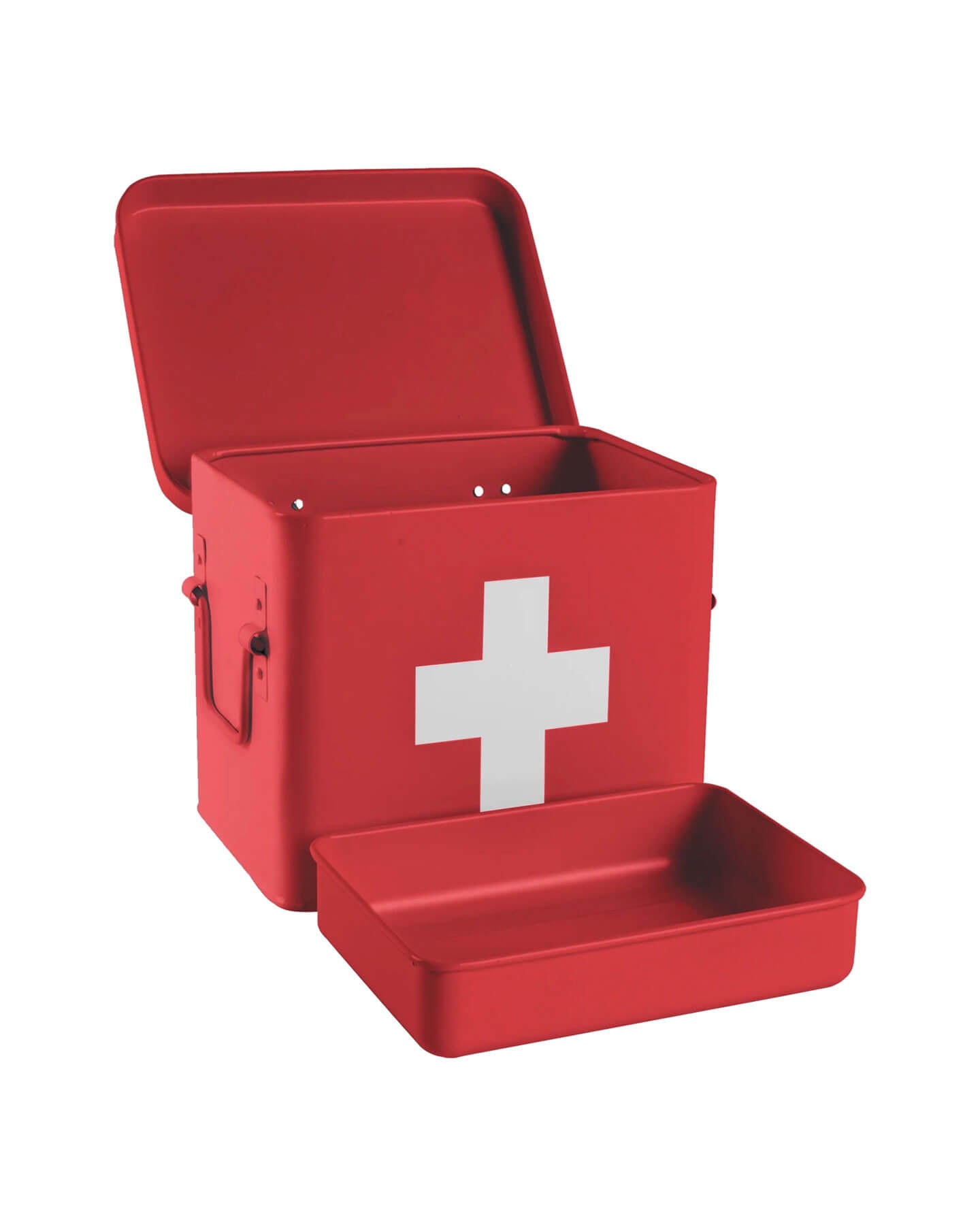 Keep your first aid essentials and everyday medical supplies neatly organised, easy to access, and beautifully stored with this stylish red metal first aid and medicine storage box.