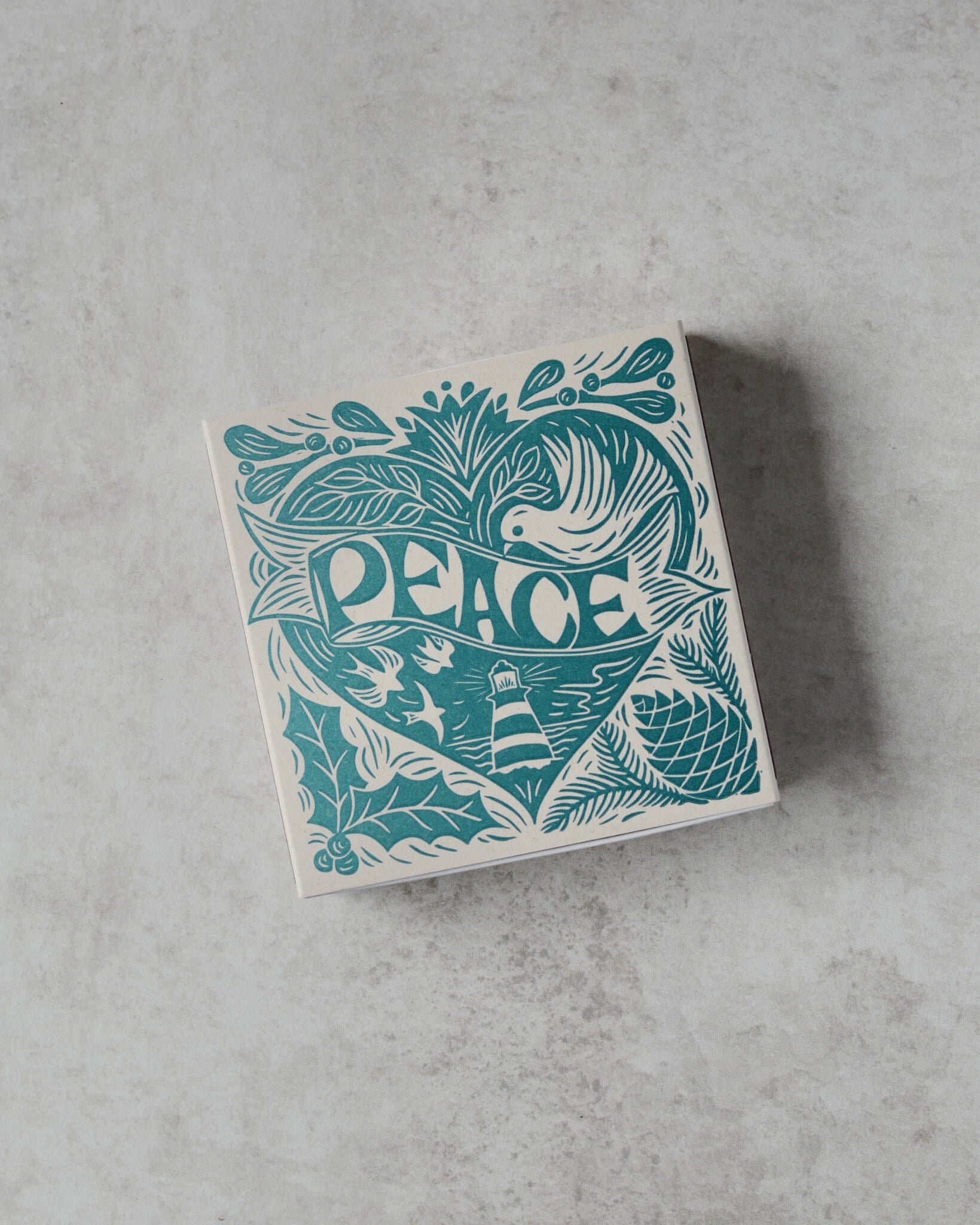 A box of luxury letterpress matches from Archivist, featuring a Cornish Christmas scene, from an original lino cut by Cornwall-based artist Jill Dunn.